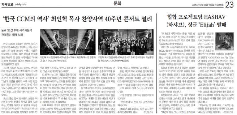 [기사] 힙합 프로젝트팀 HASHAV(하샤브), 싱글 ‘Elijah’ 발매(기독일보)